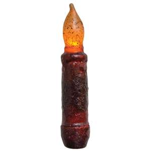 This 4" battery-operated timer taper features a rough textured wax coating. While lit, candle offers a soft ambient glow. Goes on with a twist of the bottom.