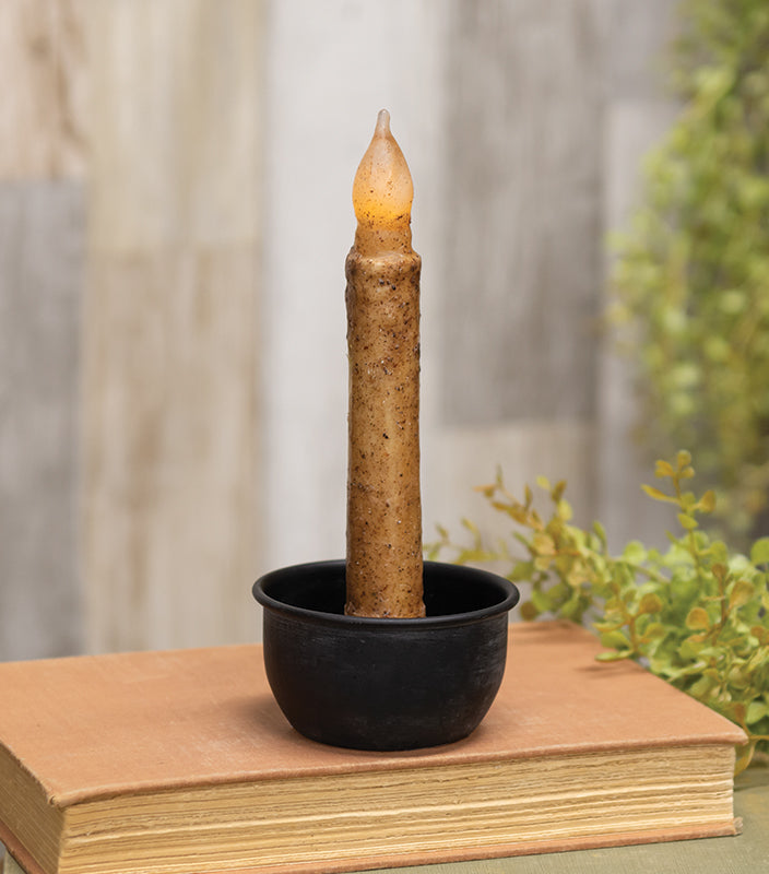 Indulge in the luxurious charm of our Old Black Metal Taper Bowl, featuring a velvety texture and delicate hints of weathered gray for a vintage aesthetic. This exquisite candle holder boasts a 3" diameter and stands at 1.75" in height, making it an ideal choice for our elegant taper candles.