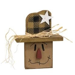 Boastin' a taupe-painted finish, a painted-on face, and a farmer hat with a mustard-and-black check pattern and a white star plus a raffia bow tie, this eye-catching Blockhead Scarecrow made of raw natural wood is an ideal addition to your fall decor. Stand it on a shelf, table, porch or hearth and liven up your space with this 11.5”-high, 9”-wide, 3.5”-deep primitively-chic USA-made portrayal!