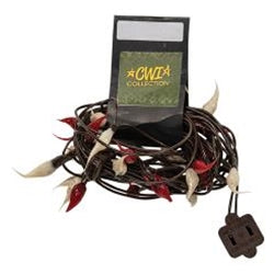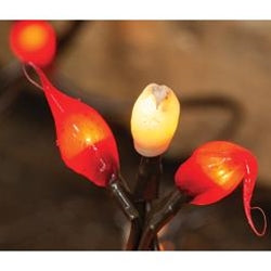 Light up your life with Red and Cream Silicone Teeny Lights! These white, incandescent cuties boast alternating crimson and cream-colored silicone casings. Illuminated, they cast a warm, soft glow, perfect for festooning your space for the holidays and beyond. Just be sure to keep 'em safe indoors - plus, if one bulb burns out, the rest will keep shining! You'll get 50 dipped bulbs on an 11ft. brown cord.