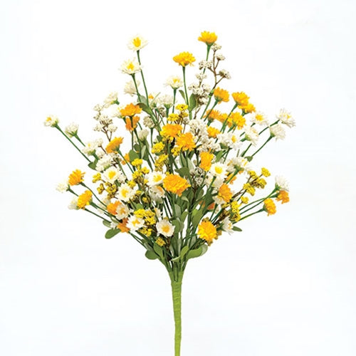 The Sunny Buds Bouquet is a decorative floral pick with a flexible, green-wrapped stem. The bouquet has soft, foamy greenery and features cream and yellow astilbe buds alongside layered cream and yellow blooms. This bouquet brings a bright and cheerful touch to the home during the spring season, displayed inside of a vase, pitcher, or other vessel. Measures 20” high.
